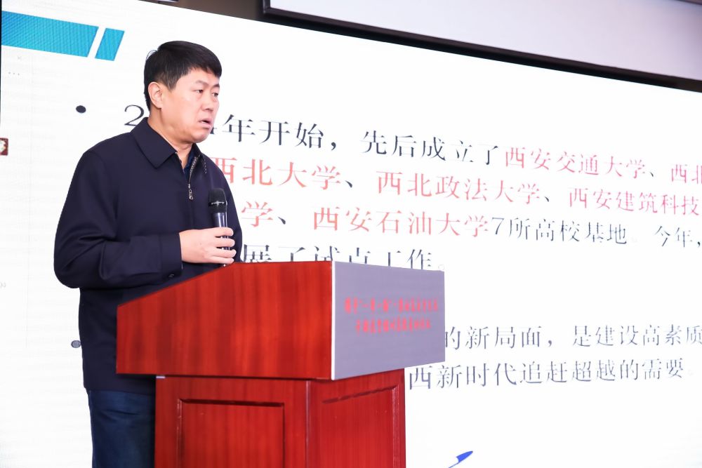 省委组织部副部长范永斌在讲话中简要介绍了陕西干部教育培训高校基地的总体情况。他强调,要进一步发挥好高校基地作用,推进高质量发展,做到坚持预研课题引导,坚持健全培训内容体系,坚持多种培训方式并举,坚持推进“领导干部上讲台”,坚持质量考核评估。他倡议全国各基地携手努力,探索形成高校基地新机制,探究专业化能力培训新模式,开创合作共赢新局面;紧紧围绕中央重大战略目标、重要决策部署和各地实际开展干部教育培训工作,在开启全面建设社会主义现代化国家新征程中,贡献新力量,谱写新篇章。
