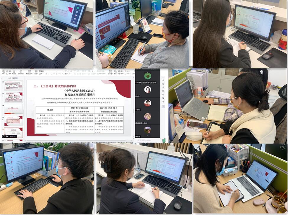 课程内容涵盖《工会法》简介、修法的背景、修改的具体情况三方面,对照《工会法》新旧条文,逐条研读每一处修改点,授课条理清楚,线上互动热烈,使员工对新修改《工会法》的内涵有了系统全面的认识。大家纷纷表示,此次培训加深了他们对工会工作的理解,对如何在新形势下开展工作有了更多的思考。