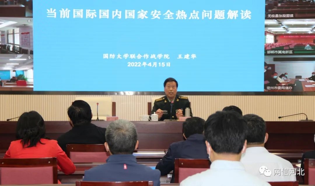本次课程由国防大学联合作战学院教授、全军优秀教师王建华讲授。王建华教授放眼国际国内两视角、纵观历史现实两维度,以当前的俄乌冲突为切入,旁征博引、追本溯源,对当前的国际国内安全热点问题进行了深度解析。