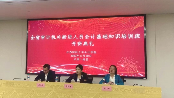 为全面贯彻落实党的二十大精神和习近平总书记考察江西重要讲话精神,聚焦“走在前、勇争先、善作为”的目标要求,着力提高审计干部队伍专业素质和履职能力,11月10日,全省审计机关新进人员会计基础知识培训班在江西财经大学开班。省审计厅党组成员、副厅长胡雅萍出席并作动员讲话,江西财经大学副校长刘小丽出席开班典礼,江西财经大学会计学院院长周冬华主持开班典礼。