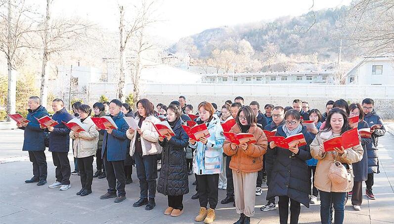 “为人民利益而死,就比泰山还重……”琅琅读书声在枣园后沟口的树林里久久回荡。冬日暖阳里,培训班的学员们站在毛泽东同志为悼念张思德发表讲话的地方,集体诵读《为人民服务》,表达在新的赶考路上向历史和人民交出新的优异答卷的坚定信念。