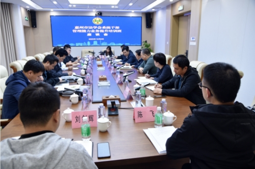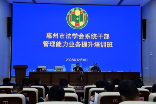 为全面提升法学会系统干部业务水平和综合素质,12月8日,惠州市法学会系统干部管理能力业务提升培训班在惠州市综治中心举办,惠州市法学会专职副会长兼秘书长陈杰作开班动员讲话,省法学会综合部负责同志出席活动并作专题授课。各县(区)法学会领导、专职工作人员,惠州中立法律服务社代表,惠州市弘扬法治公益基金会代表等四十余人参加培训。